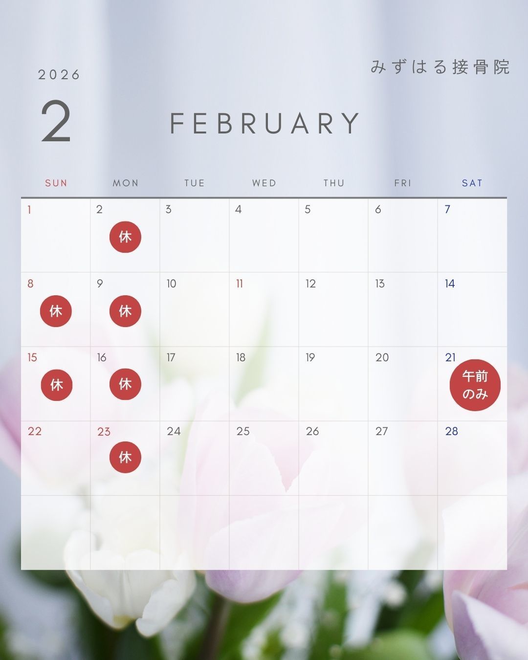 2/21(土)午前のみ施術