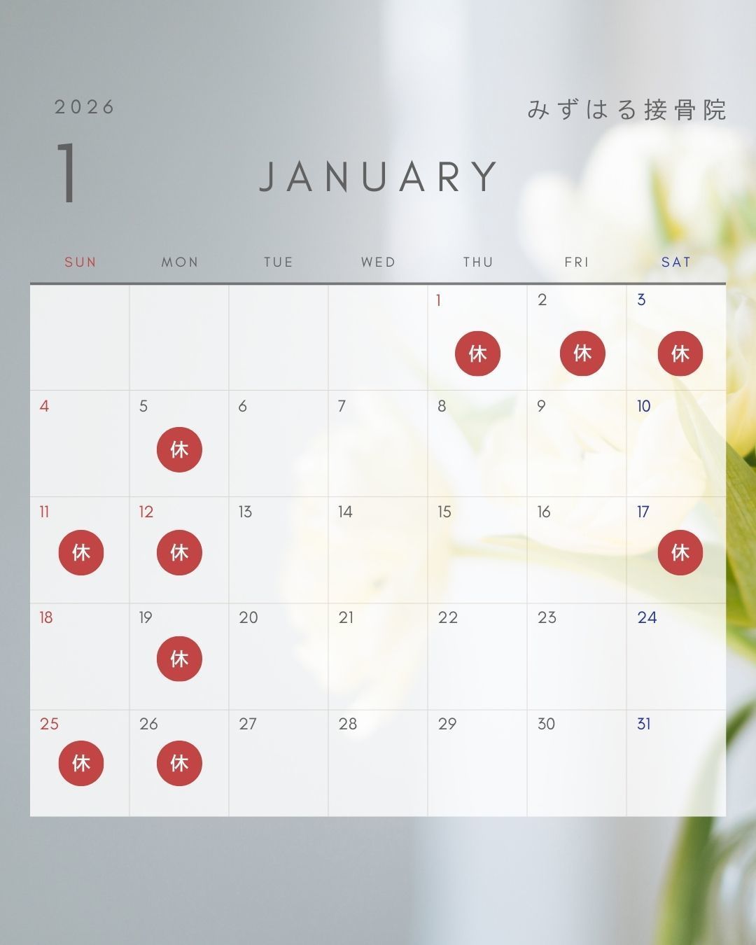 1/26(月)休み